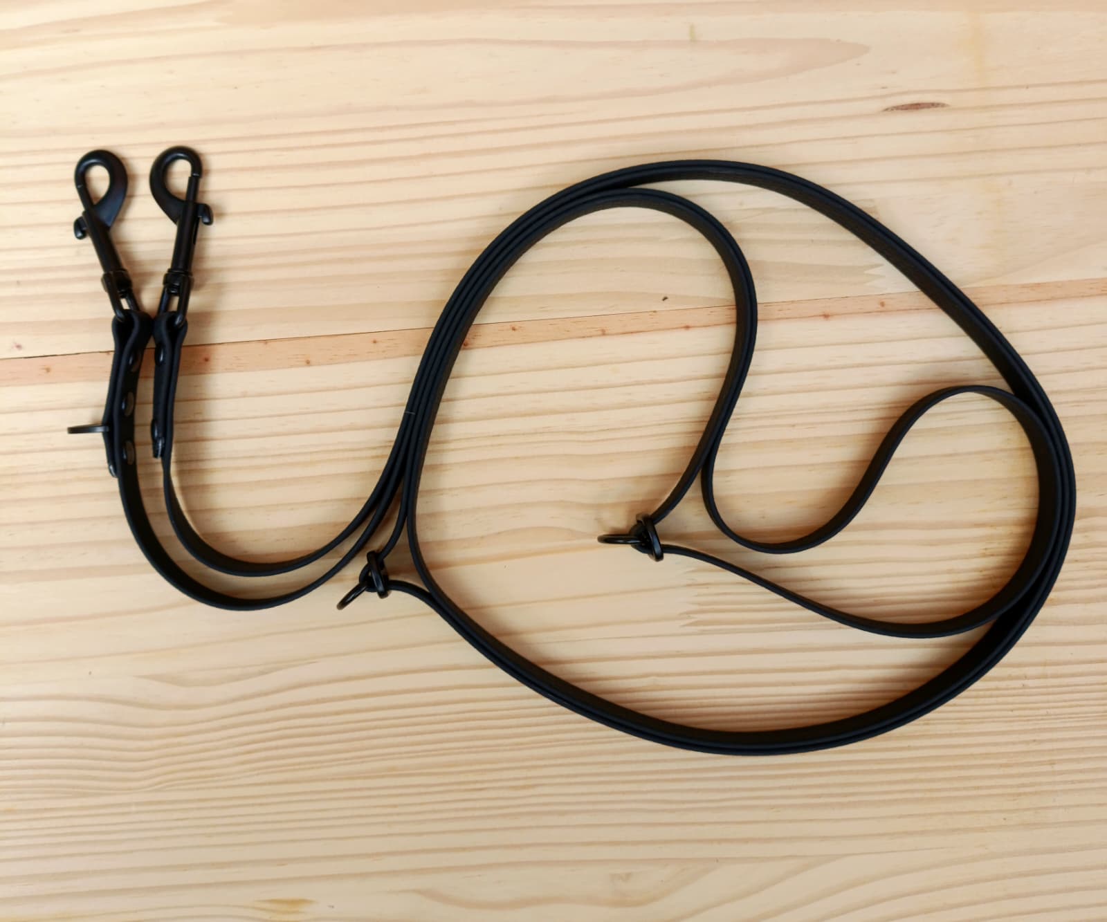 Adáptala para cada momento del paseo, extiéndela entera hasta los 3m, o bien ajústatela al cuerpo y hazla "manos libres", o bien úsala en doble sujeción gracias a sus dos mosquetones. Dispone de tres anillas, dos de ellas son móviles para acortarla o hacerla más larga.